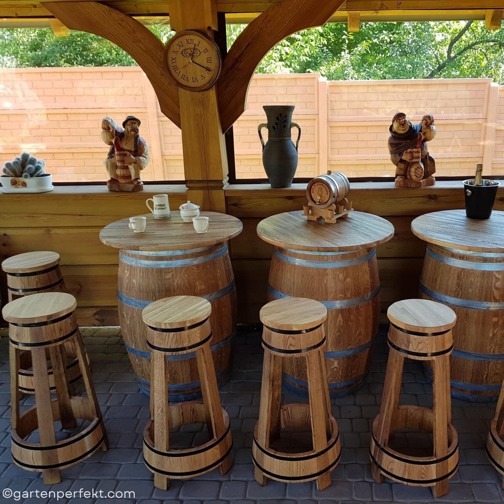 In unserem Sortiment finden Sie nicht nur Tisch vom Fass, aber auch: Fassgarnituren, Fassbars, Fasshockers, Fass-Sessel, sowie überdachte Gartenmöbel.
